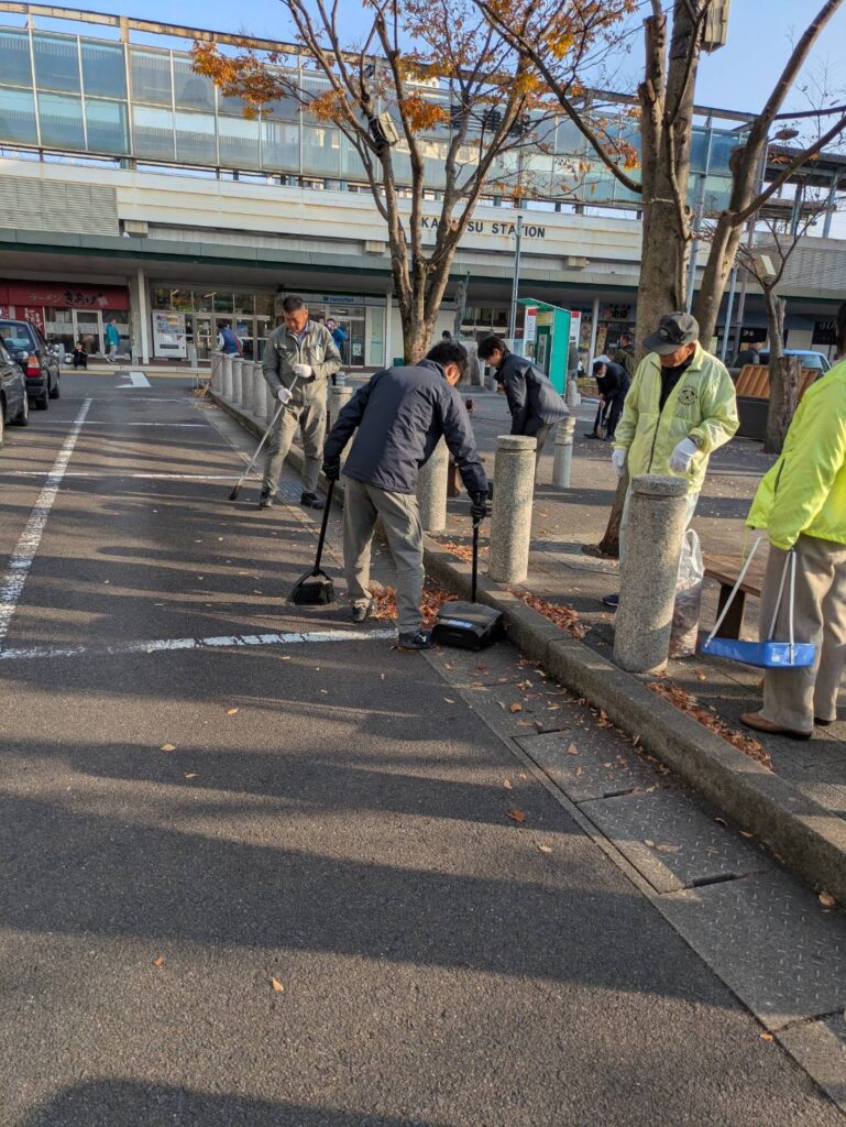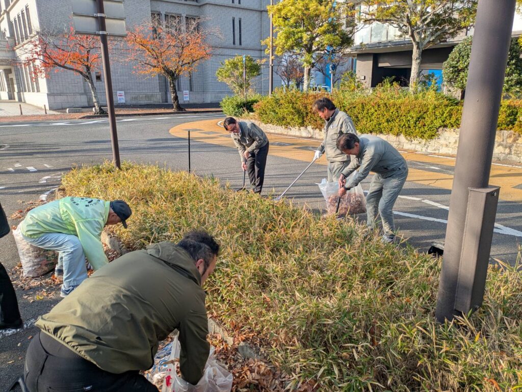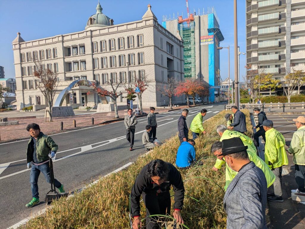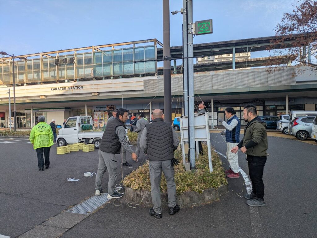 唐津駅南のボランティア清掃活動とイルミネーション設置を行いました。